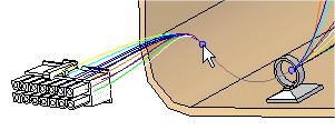 After creating a wire harness, you may need to reposition conductors and components to clean up the design. When you create a cable or bundle, a bluedot is created at the point where the wires, cables, and bundles meet.