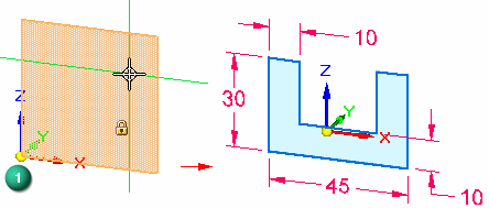 When starting a new part, you would typically draw a sketch on one of the three principal planes of the base coordinate system. For example, you can draw the first sketch for a new part on the XZ principal plane of the base coordinate system (1).