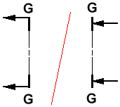Positions the cutting plane caption text at the open end of the cutting plane. For example, if your cutting plane terminator option is set to Point Away, the text is positioned as shown at (A). If your cutting plane terminator option is set to Point Toward, the text is positioned as shown in (B).