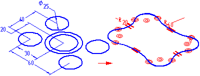 After you have copied sketch elements, you can use the drawing commands to modify them. For example, you may need to add elements to the profile not contained in the sketch. You can also add dimensions and relationships between the elements on the active profile plane and the sketch.