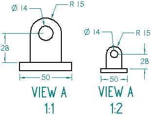 The dimension and annotation sizes on the working sheet are independent of the drawing view scale. For example, if you define the height and size of dimension text as 0.125 inches or 3.5 millimeters, these are the actual values of the dimension text on the printed drawing.