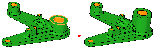 Thickens a part by offsetting one or more faces. You can use this command to construct a solid from a construction surface or to modify an existing solid. Instead of editing one or more features, you can use the Thicken command to add the necessary material to the solid model, and achieve the same result in less time.
