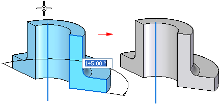• To define the extent precisely, select a keypoint, or type an angular value in the dynamic edit box, then press the Enter key. For values, less than 360 degrees, position the cursor to define the side of the sketch in which you want to construct the feature.