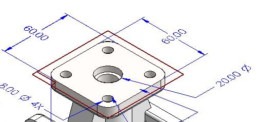 To learn how to use the dimension value edit handle, see the Help topic, Resize the model by editing PMI dimension values.
