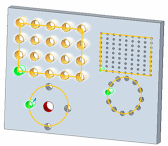 Rectangular Patterning--Improvements made to the rectangular patterning behavior. You can dynamically drag the pattern profile on face, center the pattern on the pattern profile. The pattern is now more predictable and produces desirable drag results. The pattern is easier to constrain and dimensionally edit.